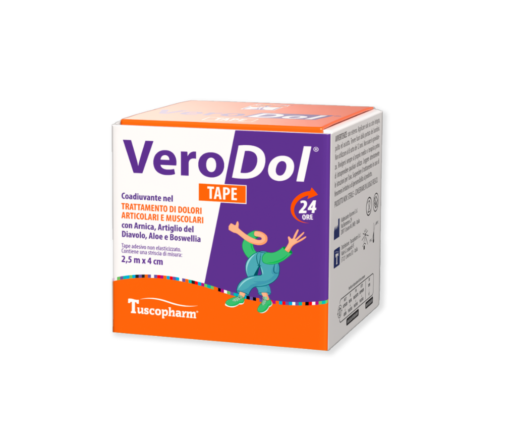 Adjuvant in the treatment of localized pains in the joints and in the muscular-skeletal system. Due to its occlusive activity the tape is able to act on the affected part favoring a slight increase in the temperature on the application area, keeping the skin protected and helping to give relief in the presence of pain.